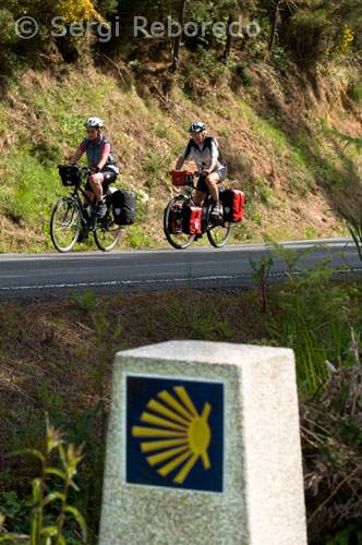 Una pareja hizo el Camino de Santiago en bicicleta. Afueras de Santiago.