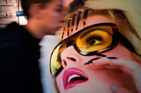 Hos Geldiniz, Falckensteinstrasse 46 in Berlin, Germany, Europe. You can find this beautifully painted house at the western end of the Oberbaum Bridge on Kreuzberg territory. The Turkish inscription on the balcony reads "Ho? geldiniz" ... "Welcome!". Painting of Chairman Mao by Andy Warhol at Hamburger Bahnhof Museum of Contemporary Art in Berlin Germany. A canvas by the American pop artist Andy Warhol of the Chinese communist leader Mao Zedong has sold for £7.6 million - more than 18 times the price paid last time it went to auction. The artist was said to have been inspired to create the iconic series of Chairman Mao paintings by the historic visit of the then US president Richard Nixon to China in 1972. Warhol transformed the official portrait of the Chinese leader, in this case using the red and yellow colour scheme of the Cultural Revolution. It was last sold at auction in June 2000 for just £421,500. The paintings were excluded from a major show of Warhol's work exhibited in China last year. Berlin. Germany. Graffiti in Hackesche Höfe entrance. A modern woman catching a man passing. Berlin “the graffiti Mecca of the urban art world.” While few people would argue with her, the Berlin street scene is not as radical as her statement suggests. Street art in Berlin is a big industry. It’s not exactly legal, but the city’s title of UNESCO’s City of Design has kept local authorities from doing much to change what observers call the most “bombed” city in Europe.